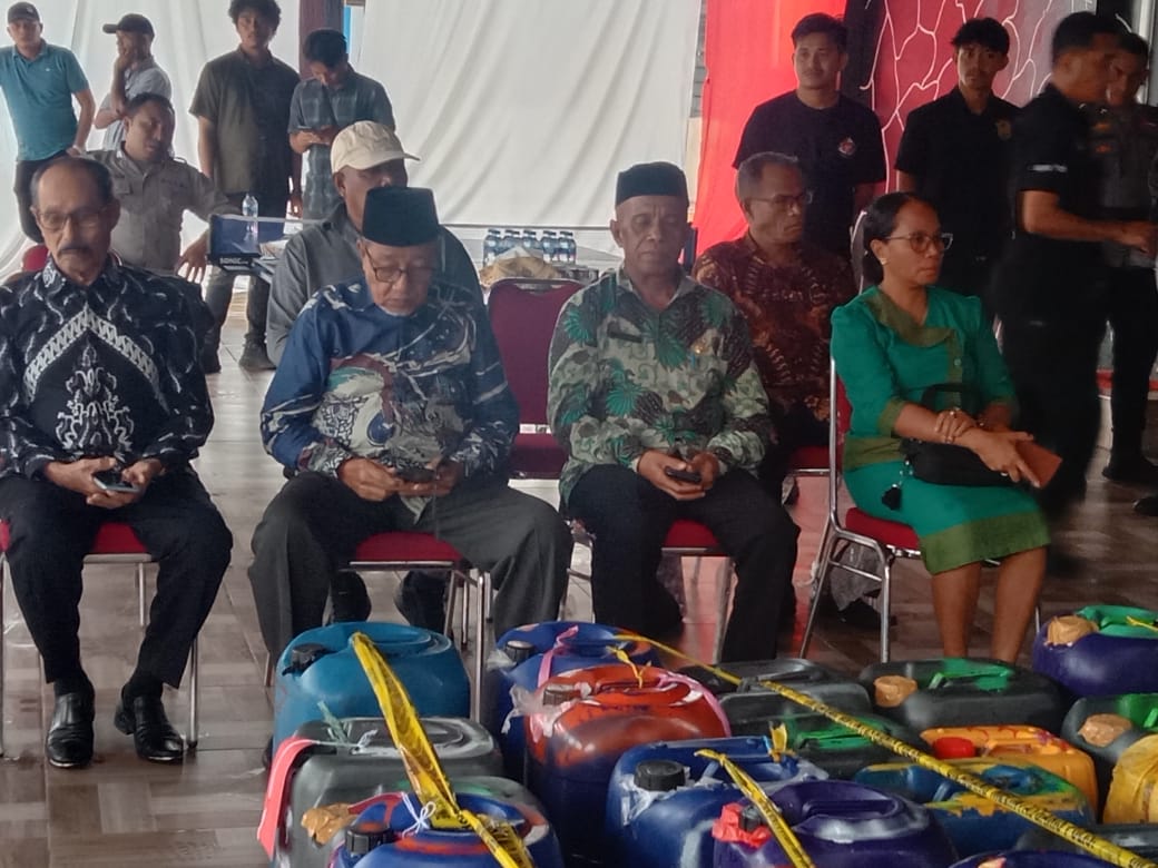 “Penyitaan Miras tersebut didasarkan pada Perda Kota Tual Nomor 6 Tahun 2019, dimana hukumannya kurungan 3 bulan, dan denda Rp. 50 juta. Pasal 25 Perda Kota Tual Nomor 6 Tahun 2019. Ini yang menjadi landasan kami dalam penegakan hukum,” tegas Kapolres di hadapan para tokoh Agama, Raja Dullah dan tokoh masyarakat serta perwakilan Pemerintah Kota Tual.
