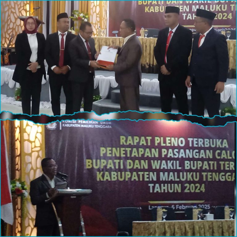 MediatorMalukuNews.com_ Komisi Pemilihan Umum (KPU) Kabupaten Maluku Tenggara (Malra) akhirnya secara resmi menetapkan pasangan Muhamad Thaher Hanubun dan Carlos Viali Rahantoknam sebagai Bupati dan Wakil Bupati (Wabup) Malra terpilih periode 2024–2029.
