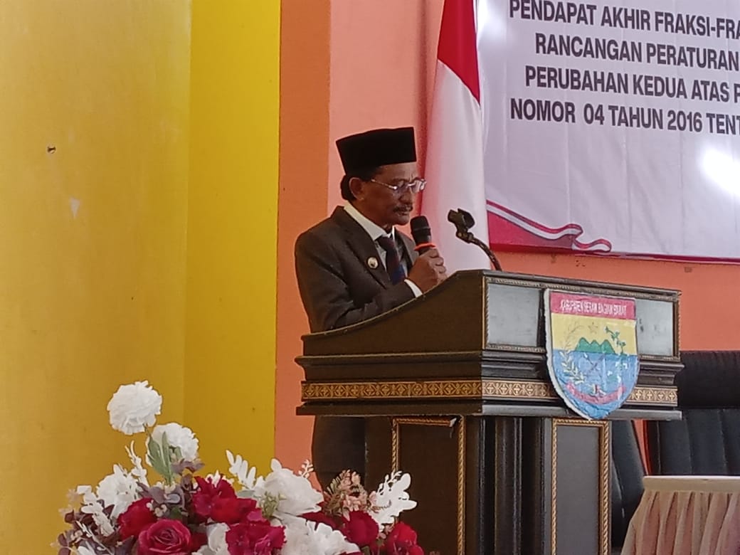 Dalam sambutannya Bupati SBB, Asri Arman mengungkapkan, pendapat akhir fraksi akan Rancangan Peraturan Daerah Kabupaten SBB tentang Perubahan kedua atas Peraturan Daerah Kabupaten Seram Bagian Barat No 4 Tahun 2016, disetujui secara aklamasi.