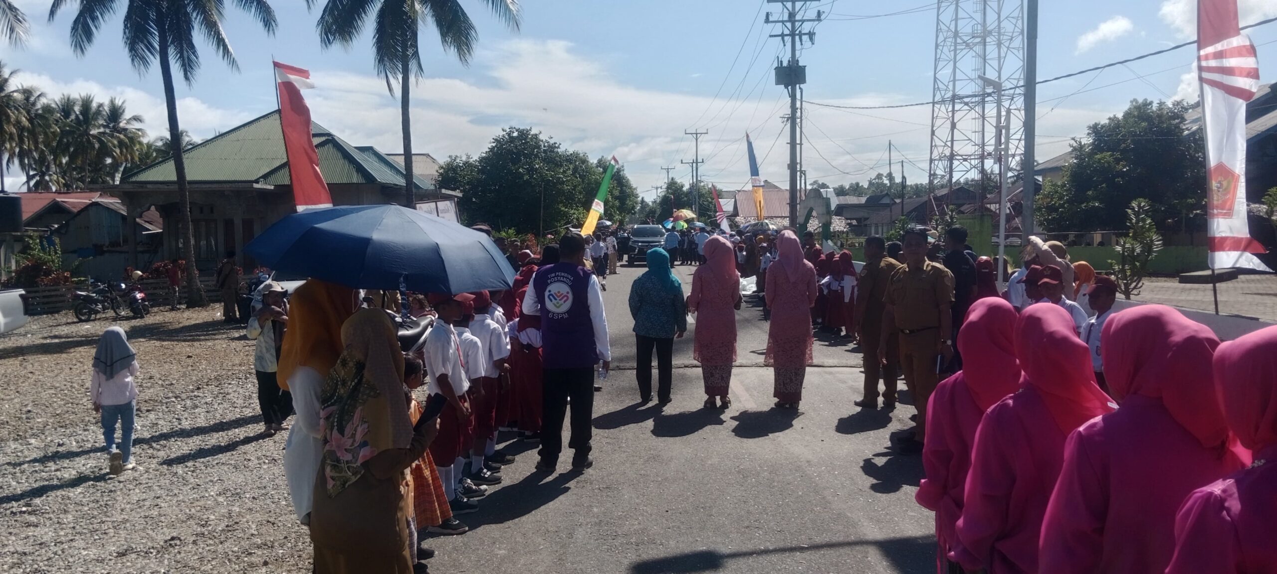 Kedatangan mereka disambut meriah oleh masyarakat setempat termasuk siswa siswi SD, SMP dan SMA dengan melakukan pagari hidup.